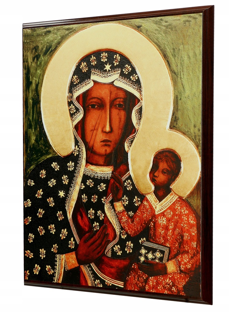 Kontury, łącznie z nimbami i dekoracją szat, obwiedzione linią sgraffito, wyrytą w warstwie malatury, co uwypukla efekt trójwymiarowości szaty i nawiązuje do ozdobnych, drogocennych sukienek, którymi przyozdabiano cudowne.. Matka boża częstochowska wędrująca ze złoconą aureolą 3d. 24 godziny + czas dostawy (w dni robocze) cena: Tył ikony wyłożony bawełnianym aksamitem.